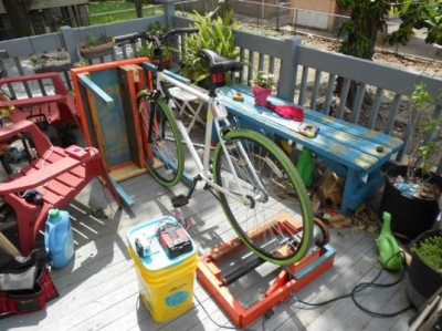ทีมนักออกแบบ ที่ชื่อว่า KlockworkKevin ได้นำอุปกรณ์ใกล้ตัวที่หาได้ภายในบ้านมาประดิษฐ์พลังงานไฟฟ้า จากจักรยาน และโต๊ะนั่งเล่นริมระเบียงบ้านธรรมดา ๆ มีแค่อุปกรณ์กักเก็บประจุไฟฟ้าเท่านั้นที่ทีมนักออกแบบได้ซื้อมาเพิ่มเติม ใช้เวลาประกอบเพียงไม่นานก็กลายเป็นเครื่องผลิตพลังงานไฟฟ้าได้อย่างง่าย ดาย ด้านการใช้งานนั้นทำได้โดยการนำล้อหน้าจักรยานมาประกอบยึดกับตัวโต๊ะ และให้ล้อหลังอยู่บนสายพานที่เชื่อมต่อกับเครื่องเก็บประจุไฟฟ้า การสร้างกระแสไฟจะสร้างด้วยการออกแรงถีบจักรยานเหมือนเวลาปั่นจักรยานแบบ ปกติทั่วไป