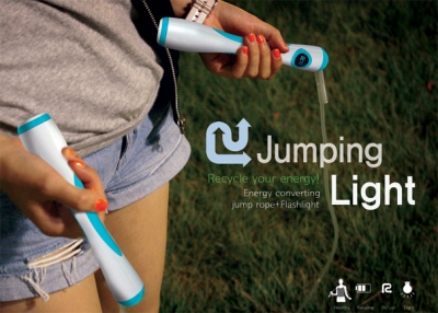 "Hyun Joo Lee" และ "Eu Tteum Lee" สองนักออกแบบแดนโสม ได้มีแนวคิดอันชาญฉลาดในการเก็บเกี่ยวพลังงานที่สูญเสียไปจากการกระโดดเชือก ทุกครั้งไปเป็นพลังงานได้ โดยการออกแบบเชือกกระโดดที่ด้ามจับมาพร้อมกับเครื่องกำเนิดไฟฟ้าพลังงานจลน์ ที่ให้ผลิตพลังงานทุกครั้งยามกระโดดเชือก