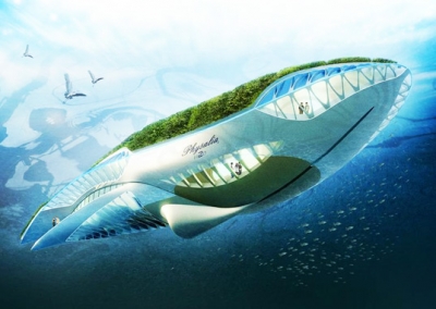 ทั้ง นี้การออกแบบนั้น ไม่ได้ตั้งอยู่บนพื้นฐานที่เกินจริง หากแต่ได้รับการไตร่ตรองว่าในอนาคตเทคโนโลยีเหล่านี้สามารถเกิดขึ้นจริงได้ โดยเรือรูปทรงปลาวาฬจะลอยตัวเหนือน้ำด้วยการปกคลุมของหลังคาสีเขียวและแผง เซลล์แสงอาทิตย์แบบบาง มีเครื่องกำเนิดไฟฟ้ากังหันน้ำให้พลังงานเพื่อการเคลื่อนไหวยังใต้ท้องเรือ ซึ่งพลังงานที่ใช้ในการเดินเรือมาจากพลังงานหมุนเวียนทั้งหมด
