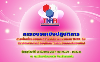 การอบรมดังกล่าว ยังได้มีการอบรมเชิงปฏิบัติเรียนรู้การใช้งานจริง ๆ ของระบบการเชื่อมโยงฐานข้อมูลงานวิจัยไทย TNRR และ IR Data Center เพื่อเพิ่มศักยภาพงานวิจัยไทยของคนไทยเชื่อมโยงอย่างเป็นระบบ
