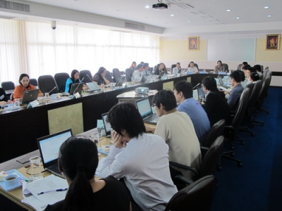 เมื่อวันที่ ๒๗ กุมภาพันธ์ ๒๕๕๖ ที่ผ่านมา สำนักงานคณะกรรมการวิจัยแห่งชาติ (วช.) ร่วมกับ คณะทำงานพัฒนาฐานข้อมูลโครงการวิจัยที่ดำเนินการเสร็จแล้ว (คณะที่ ๑) ภายใต้โครงการคลังข้อมูลงานวิจัยไทย (TNRR) ได้จัดให้มีการประชุมปฏิบัติการ การเชื่อมโยงฐานข้อมูลงานวิจัย กับคลังข้อมูลงานวิจัยไทย (TNRR) ด้วยระบบ IR Data Center ขึ้น ณ ห้องประชุมพลโทพระยาศัลวิธานนิเทศ โดยมี ผอ.เพชรา สังขะวร เป็นประธานฯ ที่ประชุมประกอบด้วย คณะทำงานพัฒนาฐานข้อมูลโครงการวิจัยที่ดำเนินการเสร็จแล้ว (คณะที่ ๑) ภายใต้โครงการคลังข้อมูลงานวิจัยไทย (TNRR) จาก สำนักงานพัฒนาวิทยาศาสตร์และเทคโนโลยีแห่งชาติ, สำนักงานคณะกรรมการนโยบายวิทยาศาสตร์ เทคโนโลยีและนวัตกรรมแห่งชาติ, สถาบันวิจัยระบบสาธารณสุข, สำนักงานกองทุนสนับสนุนการวิจัย จำนวน ๑๑ ท่าน และผู้แทนหน่วยงาน ที่พร้อมเข้าร่วมการเชื่อมโยงฐานข้อมูลงานวิจัย กับคลังข้อมูลงานวิจัยไทย จำนวน ๒๓ ท่าน จากมหาวิทยาลัย ๑๕ แห่ง คือ มหาวิทยาลัยเชียงใหม่, มหาวิทยาลัยเกษตรศาสตร์, มหาวิทยาลัยธรรมศาสตร์,มหาวิทยาลัยบูรพา,มหาวิทยาลัยสงขลานครินทร์, มหาวิทยาลัยมหิดล, มหาวิทยาลัยเทคโนโลยีพระจอมเกล้าธนบุรี, มหาวิทยาลัยเทคโนโลยีราชมงคลกรุงเทพ, มหาวิทยาลัยราชภัฏสวนดุสิต, มหาวิทยาลัยราชภัฏอุตรดิตถ์, มหาวิทยาลัยราชภัฏสงขลา, มหาวิทยาลัยราชภัฏพระนคร, มหาวิทยาลัยราชภัฏเชียงราย, สถาบันบัณฑิตพัฒนบริหารศาสตร์ และ สถาบันการจัดการปัญญาภิวัฒน์ วัตถุประสงค์ของการประชุม เพื่อให้ที่ประชุมรับทราบความก้าวหน้าของการพัฒนาเครื่องมือ IR Data Center ซึ่งเป็นช่องทางการเชื่อมโยงฐานข้อมูลการวิจัย สำหรับหน่วยงานที่ไม่ได้ใช้ Open Source Softwareในการจัดการฐานข้อมูลให้สามารถเชื่อมโยงฐานข้อมูลกับคลังข้อมูลงานวิจัยไทยได้ โดยวิทยากรจาก สำนักงานพัฒนาวิทยาศาสตร์และเทคโนโลยีแห่งชาติ สำนักงานคณะกรรมการวิจัยแห่งชาติ และ บริษัทซิมพลีไบรท์ ซิสเต็ม จำกัด ร่วมกันบรรยายและสาธิตการใช้งาน ระบบ IR Data Centerและผู้เข้าร่วมการประชุมได้ปฏิบัติการใช้งานระบบ กับข้อมูลจริงที่แต่ละหน่วยงานได้เตรียมมา จากนั้นร่วมกันหารือถึงปัญหาข้อขัดข้อง และแนวทางการแก้ไข รวมทั้งข้อเสนอแนะต่างๆ เพื่อคณะทำงาน จะได้นำไปพัฒนาระบบIR Data Center ให้มีประสิทธิภาพสมบูรณ์ยิ่งขึ้น